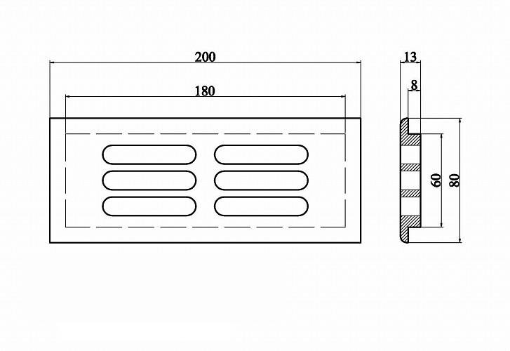 drewniana kratka wentylacyjna 200*80 mm